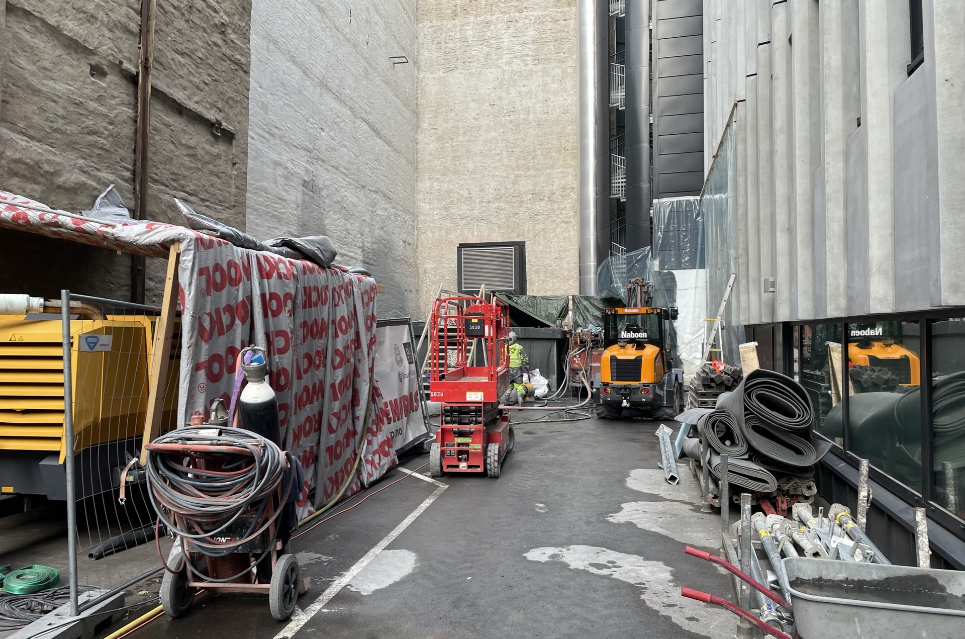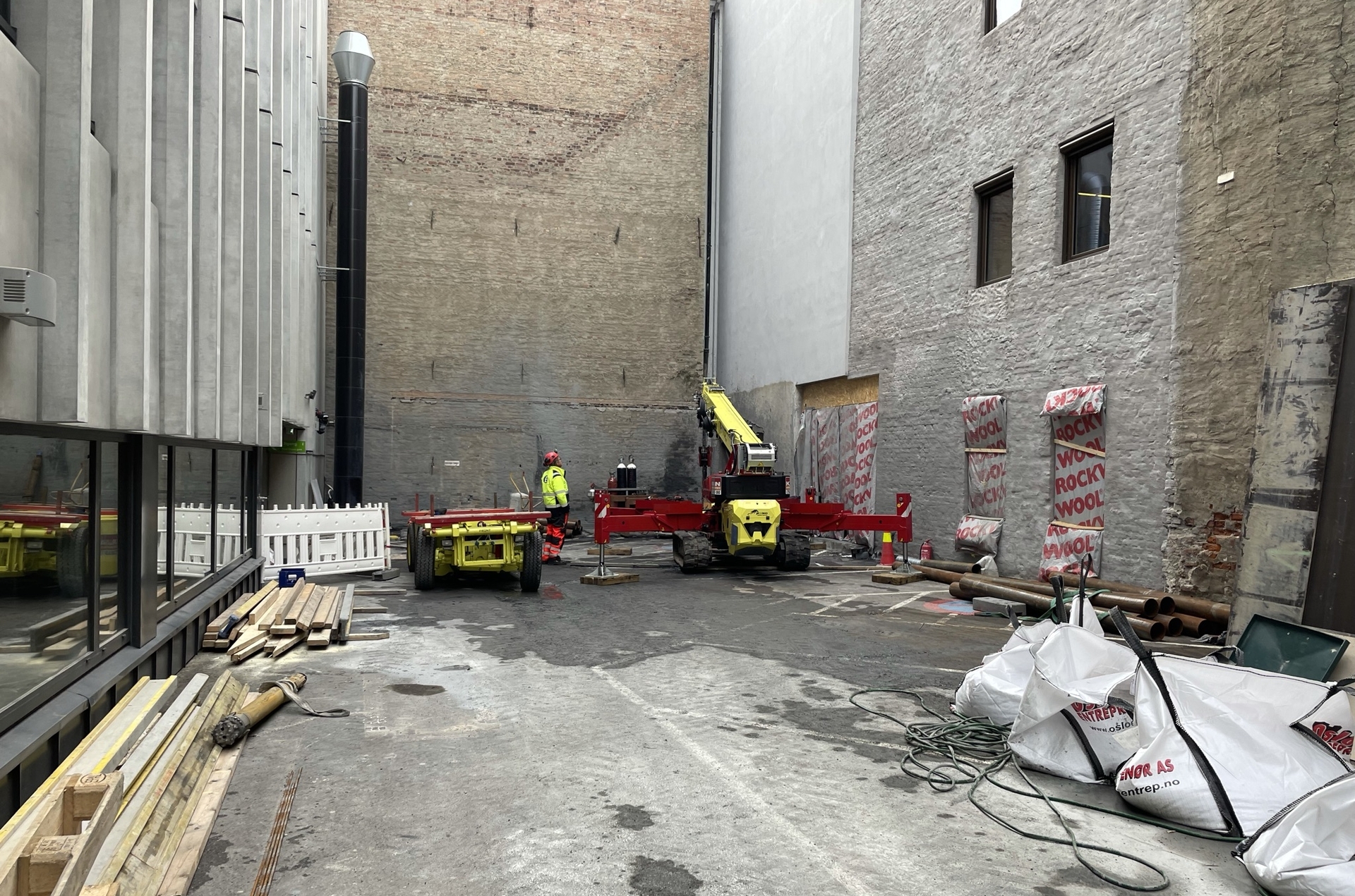 Det er kun riggomådet i bakgården da det ikke er lov å stenge Fred Olsens Gate, dette gjør at prosjektet har veldig begrenset med riggområdet.