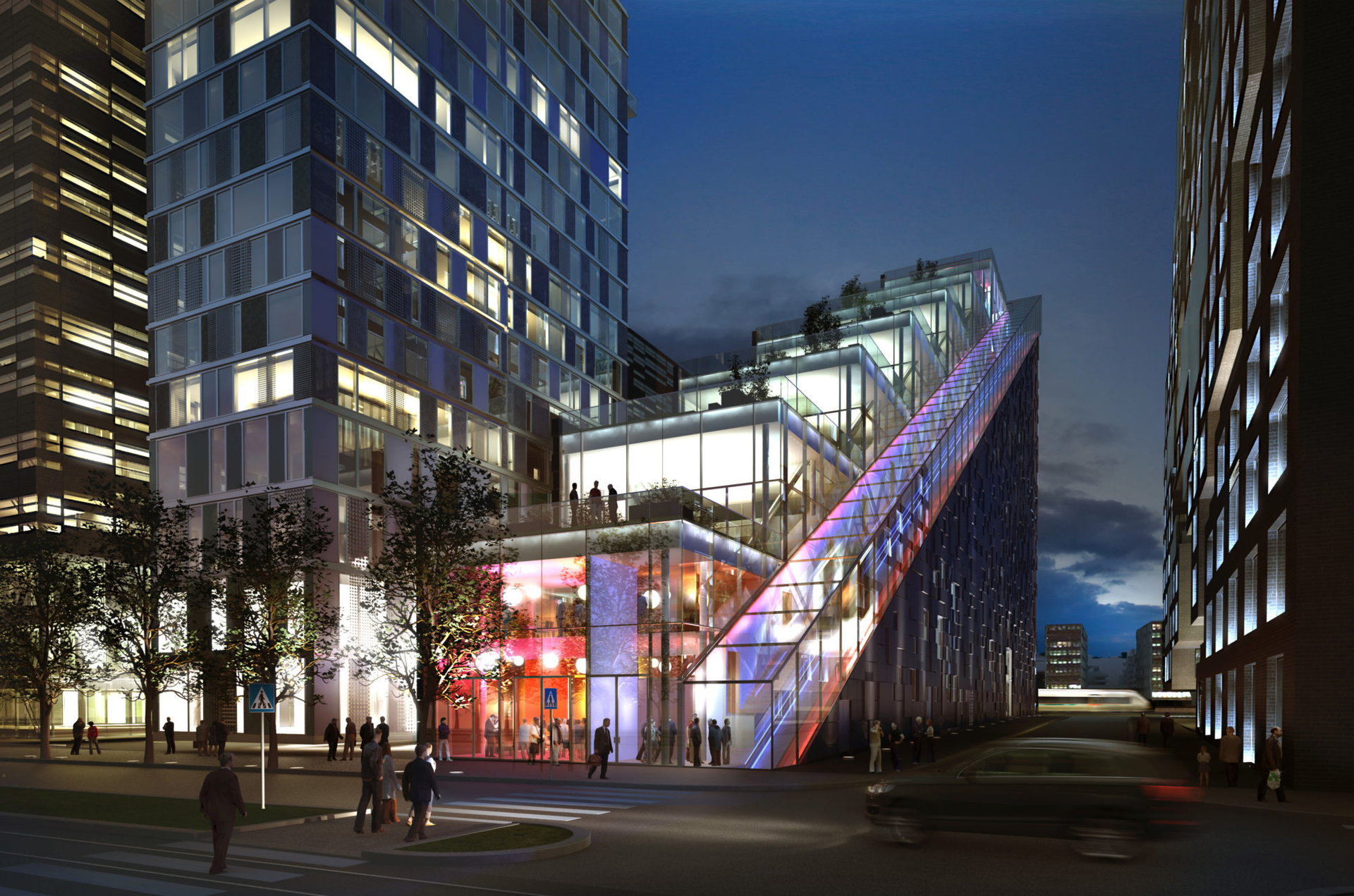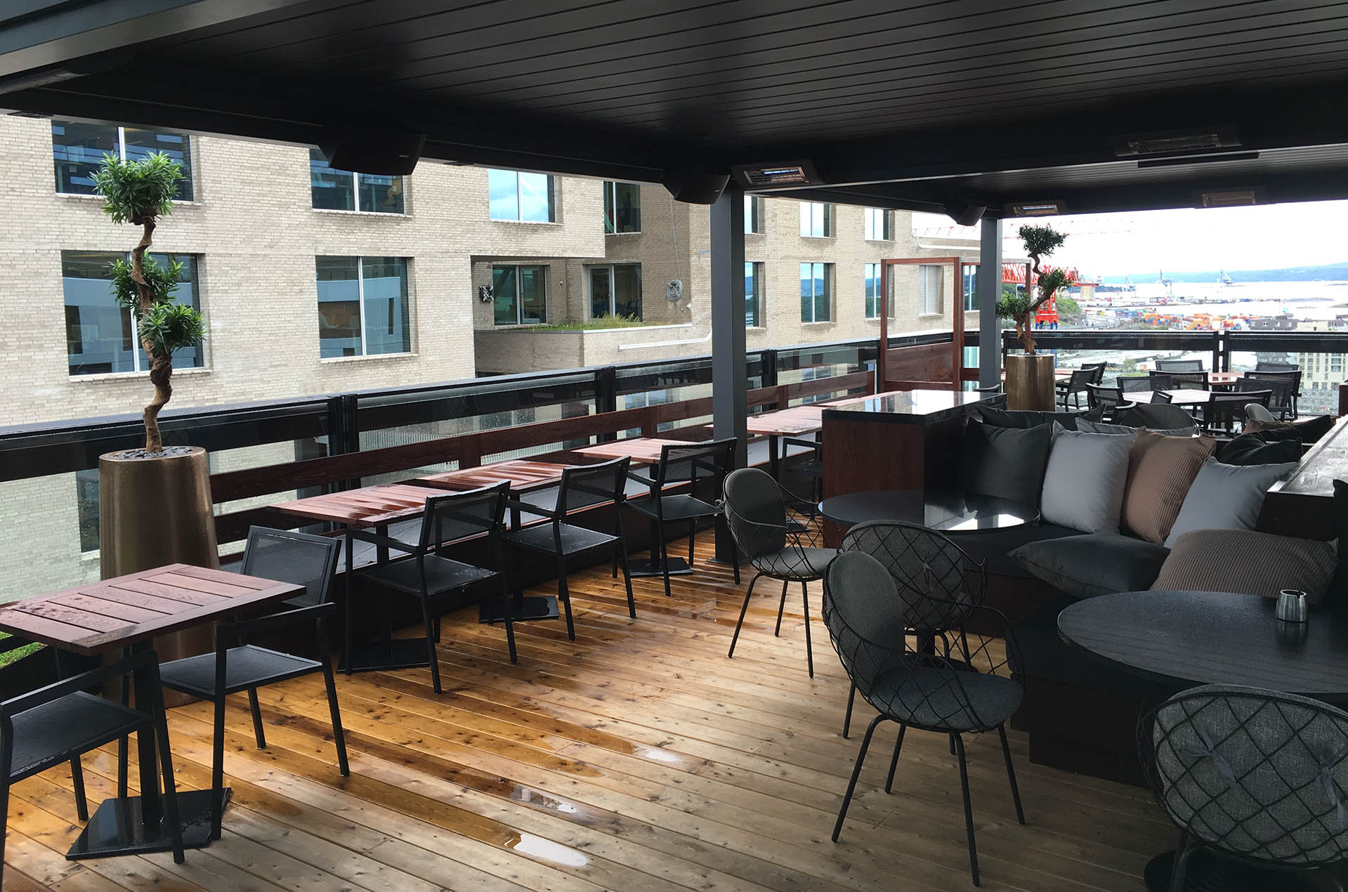 Med en unik skråheis føres du fra gateplan til bar og utvendig lounge i 13. etasje. Fra den lille restauranten i 14. etasje er det 360 grader mektig utsikt over byen, nærområdet, fjorden og øyene.