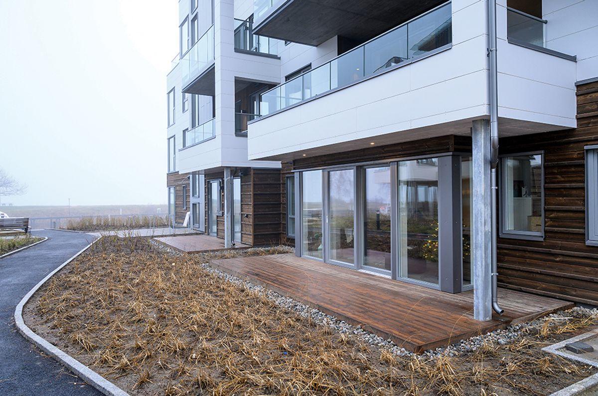 Fra oppholdsarealene med uteplasser er det direkte tilgang til den offentlige havnepromenaden og egne båtplasser.